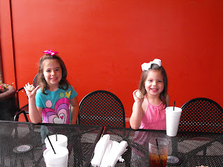 Friday night we were joined by The Thompson's for dinner in good ole' downtown Dalton. We have been waiting to try Irongate for the longest time and we finally had the perfect chance! I highly recommend it! The kids had so much fun watching David throw the pizza in the air & they even got their own dough to throw! We had their little patio to ourselves...which was much needed with our crazy little girls! :)